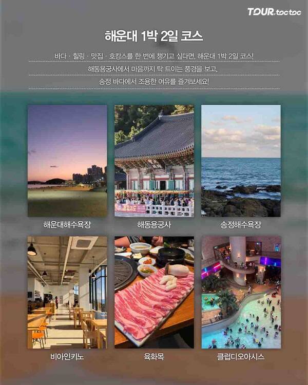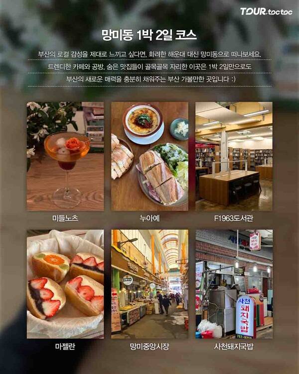 카페 투어, 시장 탐방, 힐링 산책, 분위기 있는 저녁까지, 다양한 매력을 두루 담아낸 부산의 매력을 제대로 경험할 수 있답니다.