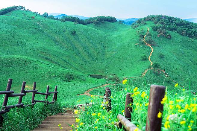 정선 남면 무릉리에 위치한 민둥산은 가을의 억새로 유명하지만, 6월에는 푸르름이 절정을 이루며 전혀 다른 매력을 드러냅니다. 숲과 억새밭이 번갈아 펼쳐지는 등산로는 여름철 산행에 최적화된 코스입니다.