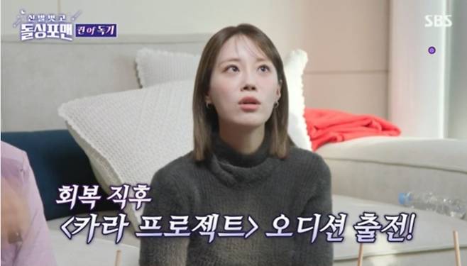 허영지는 "카라 오디션에 아팠는데 독한 약을 먹어13kg가 쪘다"라며 "회복 직후 '카라 프로젝트' 오디션에 참가했고 한 달만에 그대로 13kg을 뺐다"고 설명했습니다.