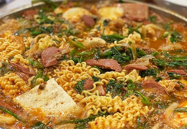 [식신 TIP] 30년 넘게 운영 중인 역삼역의 터줏대감이에요. 미나리 가득 들어가 시원한 국물 덕에 느끼하지 않아서 좋아요. 부대찌개 특유의 인스턴트 한 맛이 덜한 곳.