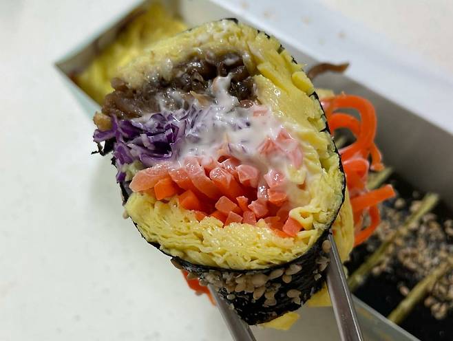 [식신 TIP] 밥 대신 계란을 가득 채워 넣은 키토 김밥 전문점이에요. 저탄수화물이라 다이어트 식단으로 제격이어서 부담 없고, 혼밥 가능해서 좋아요.
