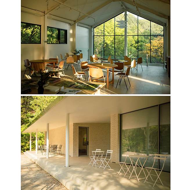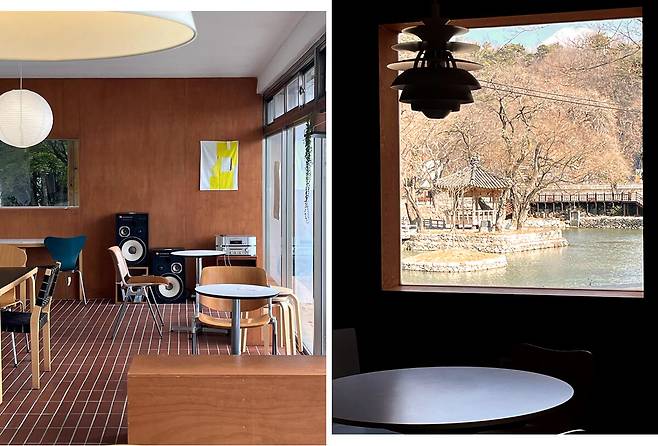 경남 함안에 간다면 식목일이라는 카페에 꼭 들러보길 바란다. 함안 입곡군립공원 근처에 위치한 식목일 2층에선 무진정이라는 정자가 보인다. 정자를 주변으로 가을이 물드는 모습을 볼 수 있다. 창밖 풍경이 그림 같아서 카페 곳곳에 있는 창문은 마치 액자처럼 느껴진다. 특히 햇살이 좋은 날에는 카페 안이 환할 정도로 자연광이 그대로 들어온다. 목재 인테리어부터 곳곳의 오브제에도 따스함이 깃들어 있다. 커피를 테이크아웃해서 무진정 주변을 한 바퀴 산책하는 이들도 많이 보인다. 산책로가 넓지는 않지만 여길 걷기 위해 와도 될 정도로 만족스럽다. 대표메뉴는 커피에 크림과 고소한 콩가루가 올라간 식목일 라떼. 고소하다는 표현보다는 꼬숩다는 표현이 어울린다.