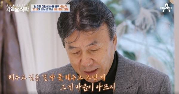 박영규는 올해 70세로, 300평 수목장에 잠든 아들을 찾아가 “아빠 열심히 살겠다”고 약속했다. 그는 “내가 열심히 살고 빛나면, 하늘에 있는 아들이 아빠를 쉽게 찾을 수 있을 것”이라며, 아들을 향한 그리움과 삶에 대한 의지를 동시에 드러냈다.