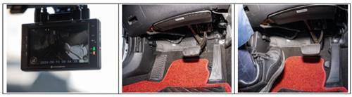 장착된 페달 블랙박스는 야간 촬영, 음성 녹음이 가능하며 운전자의 페달부 조작 및 차량 운행 상황 전반을 녹화한다.