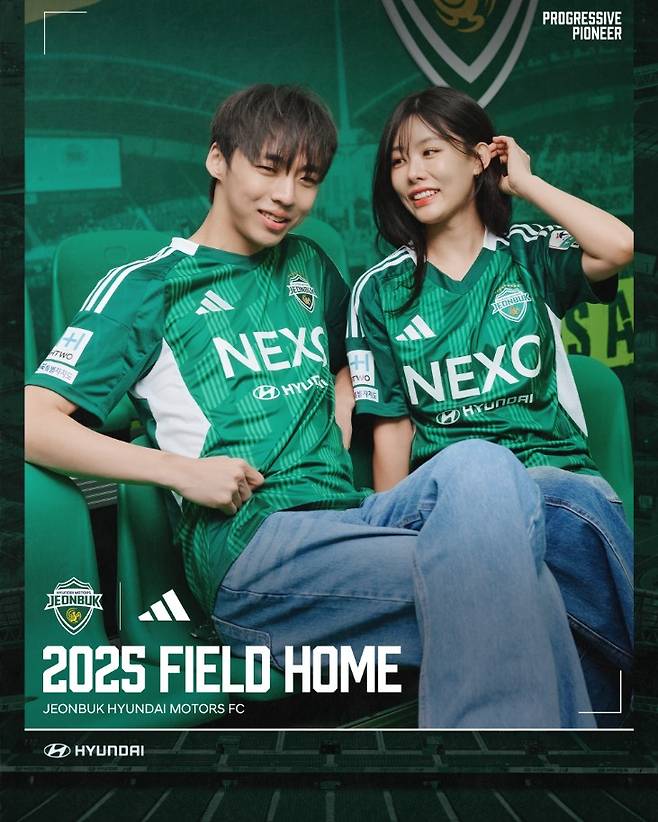 'Progressive Pioneer' 명칭을 가진 홈 유니폼은 전북의 상징인 그린 색상에 '스텝업' 디자인을 녹였다. 오른쪽 슬리브에는 현대자동차그룹의 수소 사업 브랜드 'HTWO'가 부착됐다.