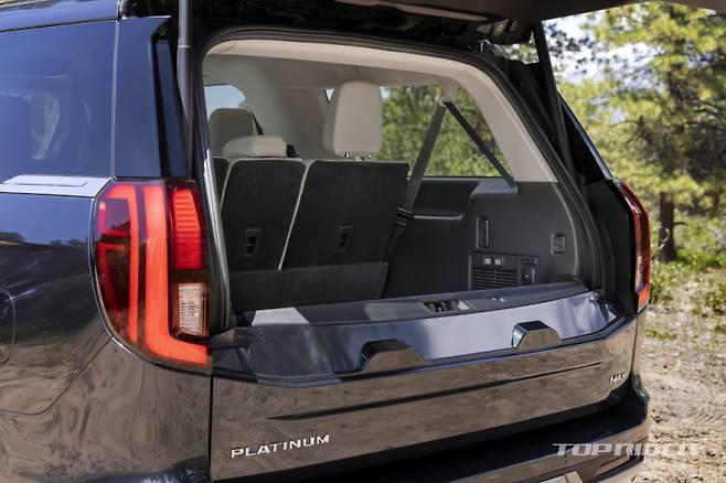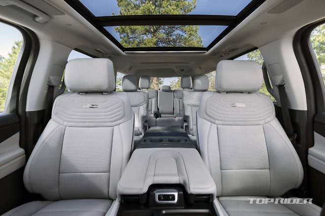 센터페시아 디스플레이는 13.2인치로 공조기와 열선 등 전반적인 차량 제어 기능을 담당한다. 다이얼 타입 변속기, 앞뒤로 최대 200mm 이동이 가능한 플렉스 파워드 콘솔, 상하 분할 오픈형 트렁크 등이 적용됐다. 하단 테일게이트는 최대 227kg을 지탱할 수 있다.