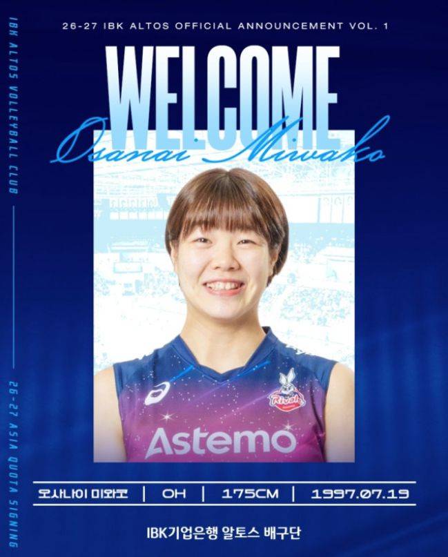 2026년 4월 15일, IBK기업은행 알토스 배구단은 차기 2026-2027시즌을 이끌 아시아 쿼터 선수로 일본 국가대표 출신 아웃사이드 히터 오사나이 미와코를 영입했다고 공식 발표했습니다. 오사나이는 일본 최고의 배구 리그인 SV리그에서 실력이 이미 검증된 자원으로, 지난 시즌 리그 공격 득점 부문 전체 8위라는 놀라운 성적을 거두었습니다.