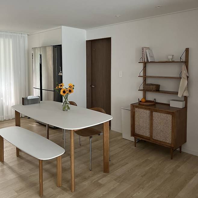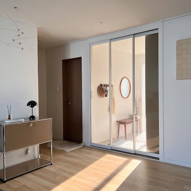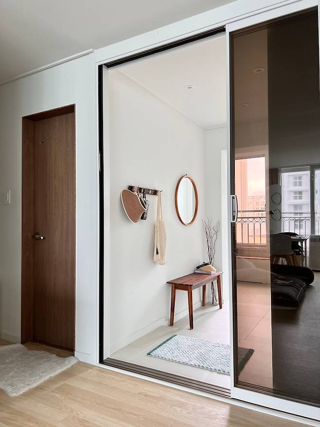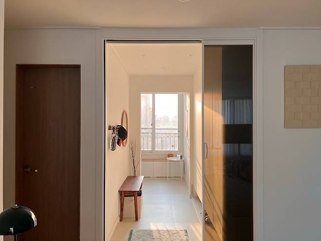 베란다로 가기 위해서는 안방을 통해야 하는데 처음부터 없애고 들어가니 익숙해져서 별 불편함 없이 생활하고 있어요. 또 단열공사를 해서 베란다 문을 통해서 들어오는 외풍도 막아줄 수 있었습니다.