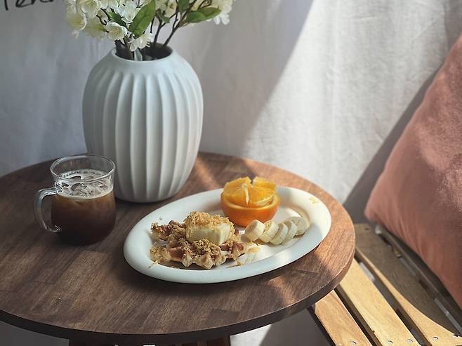 가끔 이곳에서 브런치와 커피를 먹으면서 시간을 보내요. 광합성(?)도 하고 책도 읽는 공간이 되었답니다:)