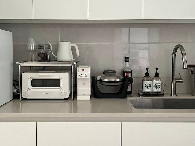 이곳은 홈 카페존인데 온 가족이 빵과 음료를 많이 먹는 편이라 이 구역은 항상 바쁩니다 :) 요즘엔 와플기도 들여서 열심히 만들어 먹고 있어요.