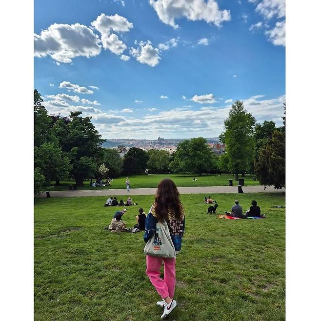 김지수가 프라하에서 전한 일상 사진 한 장이 따스한 감성을 전하고 있다. 그녀는 인스타그램에 “질리지 않는 하늘과 케잌, 집밥과 라면이 행복”이라는 문구와 함께 내추럴한 무드의 착장으로 눈길을 끌었다. 특히 컬러풀한 니트와 핑크 스커트가 어우러진 코디는 편안하면서도 스타일리시한 분위기를 자아낸다.
