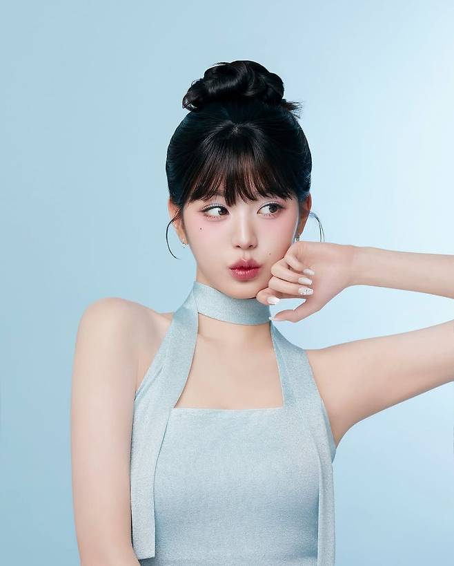 이 외에도 눈을 자연스럽게 강조해주는 긴 속눈썹과 반짝이는 귀걸이, 그리고 잔머리까지 정돈된 헤어스타일은 그녀의 전체적인 무드를 정리하는 데 중요한 요소로 작용했다. 스타일링 자체는 심플하지만, 컬러와 디테일에서 오는 섬세함이 장원영의 고급스러운 이미지를 완성한다.