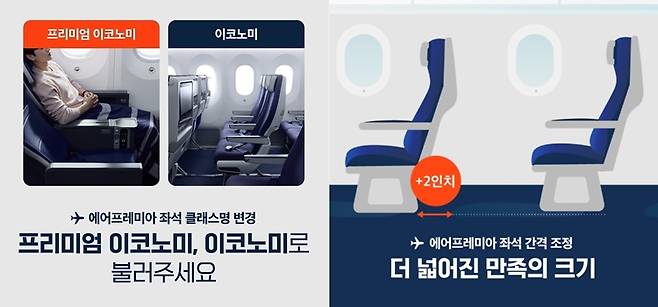 에어프레미아 측은 “다소 낯설게 느껴졌던 기존의 이름 대신 글로벌 항공 업계에서 통용되는 표준 용어를 사용하게 됐다”며 “기존의 넓은 좌석 간격은 그대로며 부르는 이름만 달라진 것”이라고 설명했다.