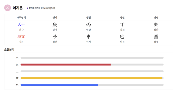 공개된 생년월일이 실제와 다를 경우 결과가 달라질 수 있습니다.
