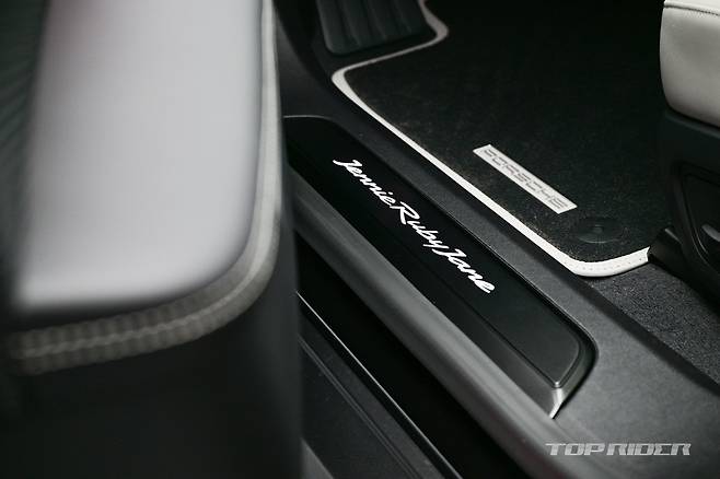 전면부 도어 엔트리 가드는 제니 루비 제인, 후면부 도어에는 제니의 별명인 니니(NiNi) 레터링이 각각 적용됐다. 제니의 요청에 따라 현행 992세대 991의 포르쉐 타이포그래피가 사용됐으며, 전면부 도어 로고 프로젝터를 통해 차량 측면부에서 구름 로고를 지면에 투사한다.