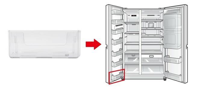LG는 4도어 냉장고의 경우 냉동고 좌우 도어 바스켓 외부, 양문형의 경우 좌측 냉동고 하부 도어 바스켓 외부에 표기되어 있습니다.