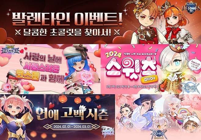 MMORPG '라그나로크 비긴즈'는 14일부터 3월6일까지 사냥을 통해 얻은 밀크 초콜릿 아이템을 모아 카드 합성용 영웅 카드, 재련 재료 등 다양한 아이템으로 바꿀 수 있는 이벤트가 진행된다. 같은 기간 게임 출석 시 코스튬 교환 티켓 1000장이 보상으로 제공되며 이용자 당 최대 12번, 1만2000 장까지 획득 가능하다.