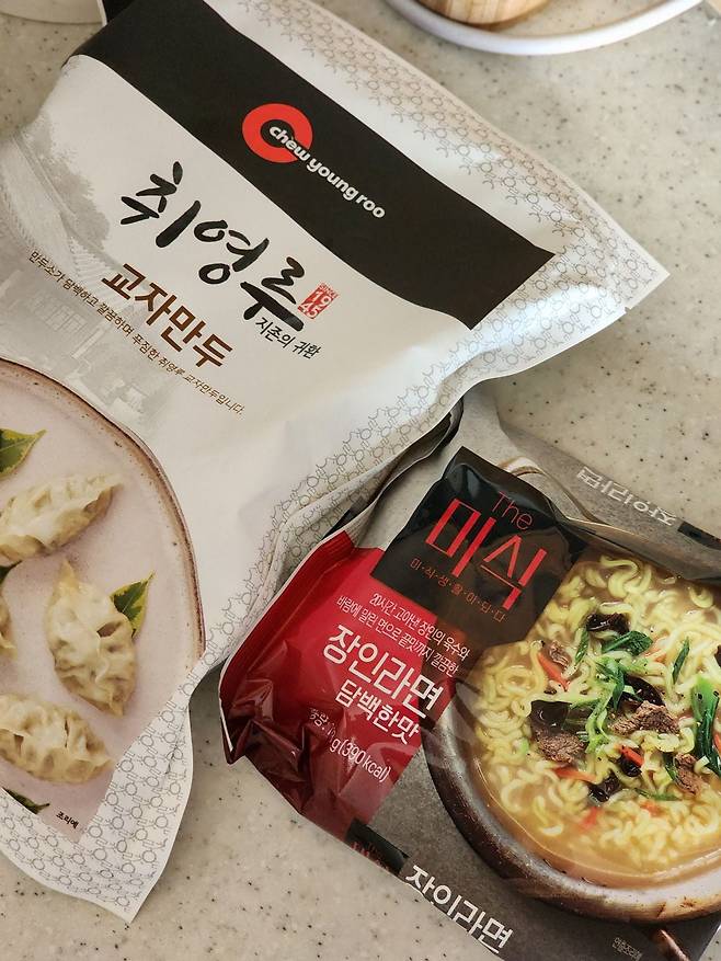 사실 비비고 같은 큰 교자들은 라면에 넣으면 잘라 먹어야 해서 작은 만두가 좋거든요.