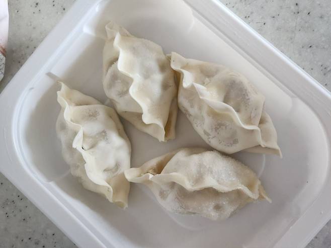 이유야 어떻든 오늘은 빨간색 라면을 안 먹기로 하고 냉동실 뒤져서 교자 만두도 꺼냅니다.