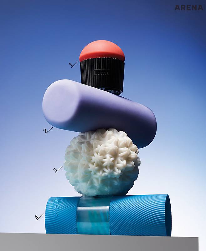 텐가 지오시리즈의 패키지는 지구를 닮았다. 지오시리즈는 다회용 셀프 플레저로, 그리스어로 지구를 뜻하는 ‘GEO’에서 영감을 받아 만들었다. 외관과 내부 모두 세밀한 기하학적 디자인으로 설계되어 묵직한 자극을 준다. 완전히 뒤집어 내부를 꼼꼼히 세척할 수 있어 위생적이다. 평소에는 투명 커버를 씌워 보관한다. 스노볼을 닮아 위화감 없이 주변과 조화를 이룬다.4 텐가 ‘스피너 픽셀 쿨 에디션’