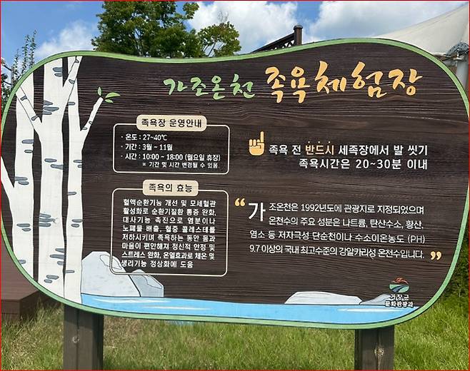 꽃단지에서 조금만 걸으면 가조온천 족욕체험장이 있습니다.