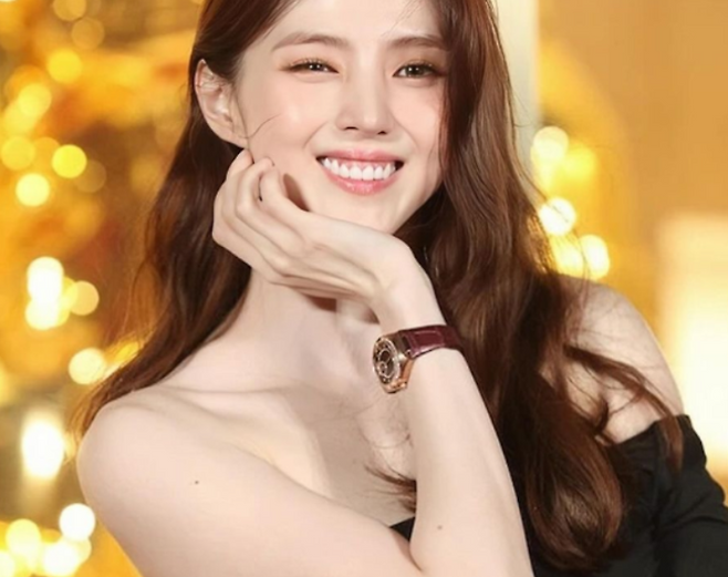 한소희는 웨이브진 헤어를 늘어뜨리고 골드펄 메이크업으로 고급스럽고 우아한 자태를 뽐냈다.