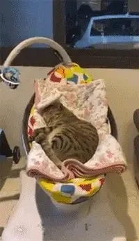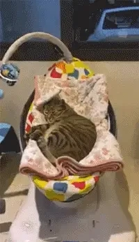아기를 위해 야심 차게 장만한 새 아기 침대가 있습니다. 아기가 잠깐 자리를 비운 사이, 고양이가 그 빈자리를 차지해 버렸습니다.