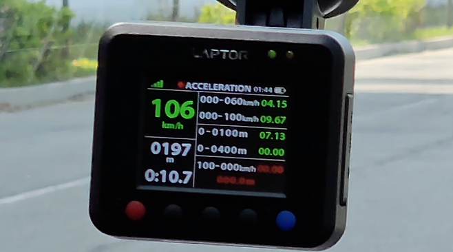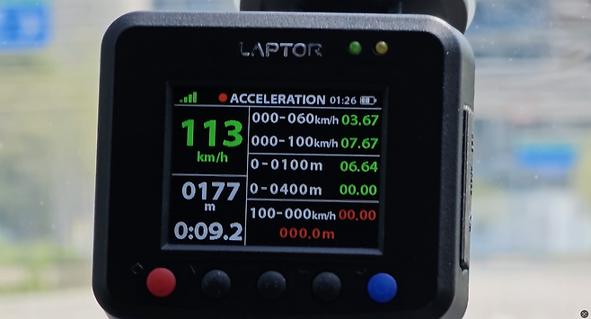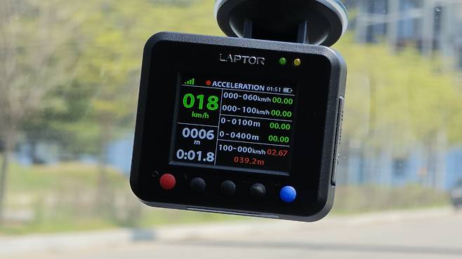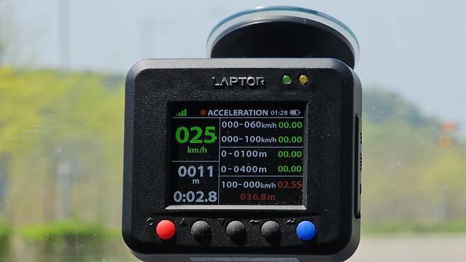 다음은 주행성능 비교. 우선 계측장비를 통해 ①0→시속 100㎞ 발진가속 성능 ②시속 100㎞에서 정지까지 제동거리를 계측했다. 성인 남성 2명이 탑승했고, 실내 온도는 22°C 오토에 맞춰 진행했다.