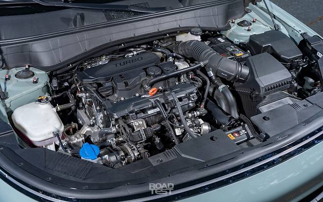 먼저 정차 상태 소음은 코나가 48dB(데시밸), 트랙스가 53dB을 기록했다. 엔진 영향이 컸다. 4기통 엔진을 쓰는 코나가 3기통 트랙스보다 한결 조용하고 진동도 말끔하게 억제했다. 1.6L 스마트스트림 터보 엔진은 과거 감마 터보 엔진과 비교해, 한층 높은 수준의 정숙성을 확보했다. 이번 2세대 코나는 N.V.H(소음.진동.불쾌감) 설계에 공을 들였단 사실을 알 수 있다.