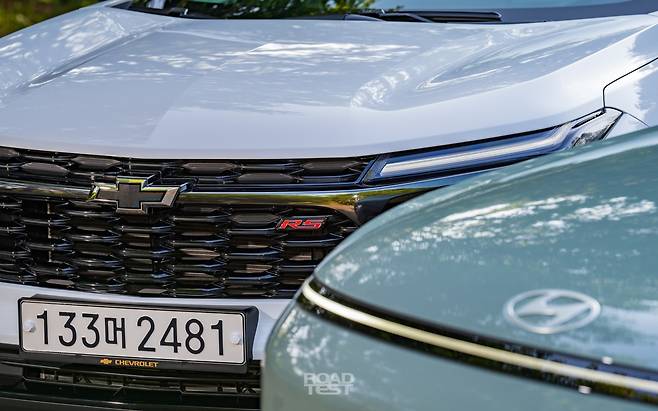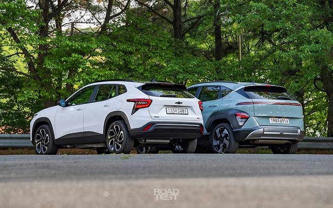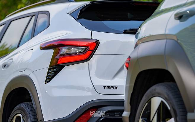 먼저 ‘사이즈’ 비교부터. 디자인 평가는 주관의 영역이기 때문에, ‘숫자’로 담백하게 비교했다. 차체 길이는 코나가 4,350㎜, 트랙스가 4,540㎜로 190㎜ 더 넉넉하다. 코나뿐 아니라 한 세대 전 투싼보다도 길쭉하다. ‘형님’ 트레일블레이저도 B-세그먼트 한계 체중 꽉 채워 나오는 선수인데, 트랙스는 준중형으로 분류해도 손색없을 만큼 큰 체격을 자랑한다.