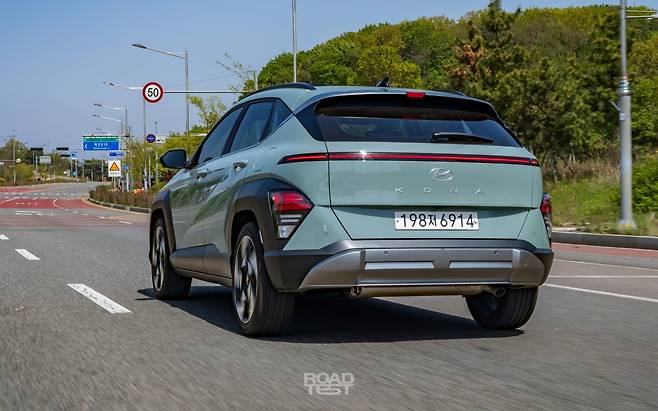 시승차인 코나 1.6 터보 2WD 19인치 모델은 평균 7.67초를 기록했다. 1,600~4,500rpm까지 넓은 영역에서 쏟아지는 27.0㎏‧m의 최대토크 덕분에, 7초 중반의 빠른 가속 시간을 꾸준히 달성했다. 특히 DCT 대신 8단 자동변속기로 바꾼 결과, 변속 충격 없이 부드럽고 매끄럽게 가속하는 느낌이 괜찮았다. 다양한 고객 연령층을 아우를 수 있는 변화다.