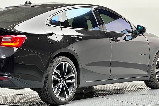 측면 역시 말리부 특유의 날렵한 실루엣이 돋보인다. DLO 라인은 리어 쿼터 글라스 하단부를 기점으로 치켜 올라가 속도감을 더했다. 사이드미러 형상은 기존 내연차와 큰 차이가 없어 보이며, 도어 핸들은 신뢰성과 공력 성능을 모두 지킬 수 있는 형태로 크기가 줄어들었다. 앞 펜더에는 보조 방향지시등 겸 블랙 하이그로시 포인트가 추가됐다.