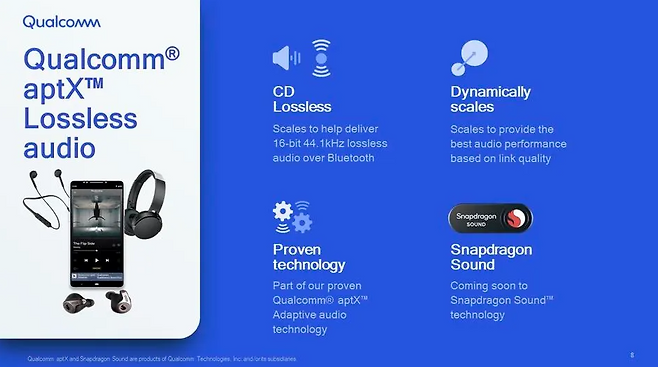 유선이 아닌 무선에서 음악을 재생하게 되면 필연적으로 오디오 데이터 손실이 발생하는데, 최신 코덱일수록 오디오 데이터 손실이 줄어들게 된다. 가장 최신 기술의 한복판에 있는 오디오 코덱이 퀄컴이 2021년 선보인 aptX Lossless 코덱이다.