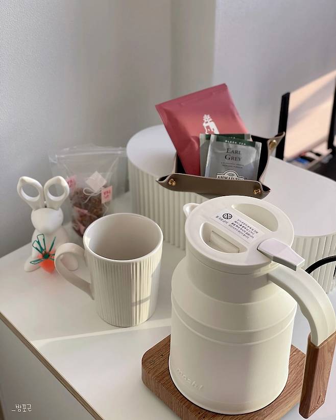 커피 머신이 있거나 특별한 카페 음료 만드는 것을 전혀 하지 못하는 터라 재택 근무할 때 커피 타 마실 정도만 할 수 있는 미니 홈카페 공간입니다.
