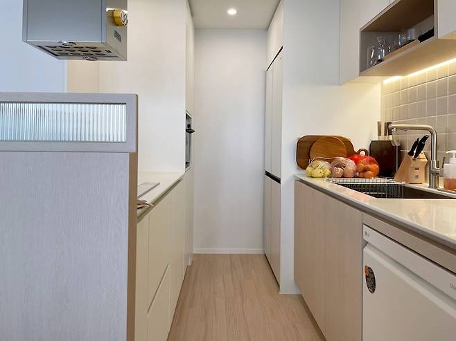 집들이 하면서 보니까 파티션이 많이 높지 않아서 그런지 집에 손님들을 초대하면 이쪽으로 와서 요리하는 것을 보고 이야기 나누는 행동이 자연스레 이뤄지더라고요.