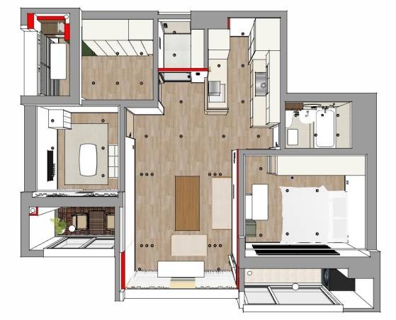 저희 집은 25평인데 베란다 전부가 비확장이라 답답함이 느껴지는 오래된 집이었어요. 그래서 처음에는 베란다 전부 확장을 생각했다가 안전을 위한 대피로 확보와 다양한 공간 구성을 만들기 위해 거실과 작은방 하나만 확장하기로 했답니다.