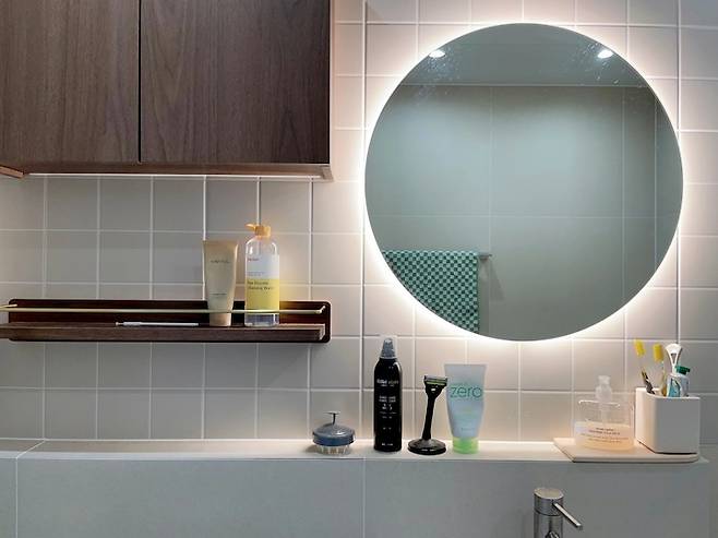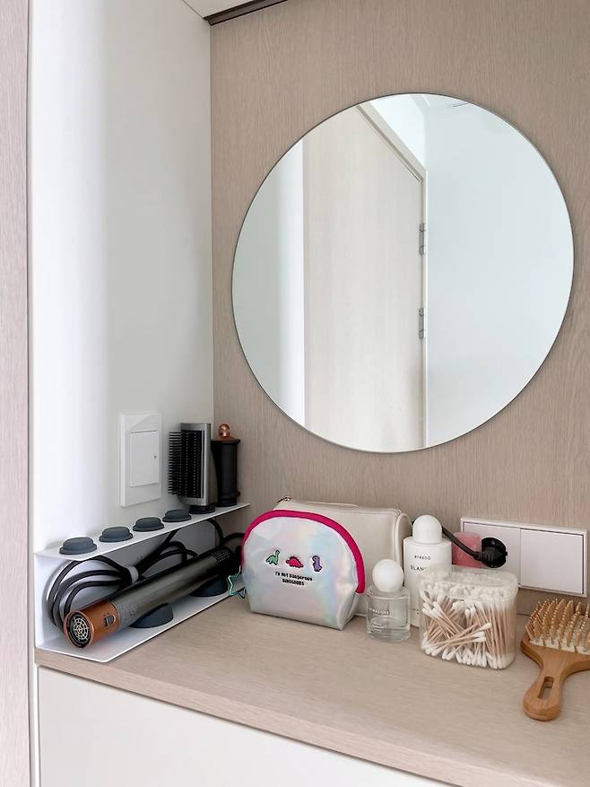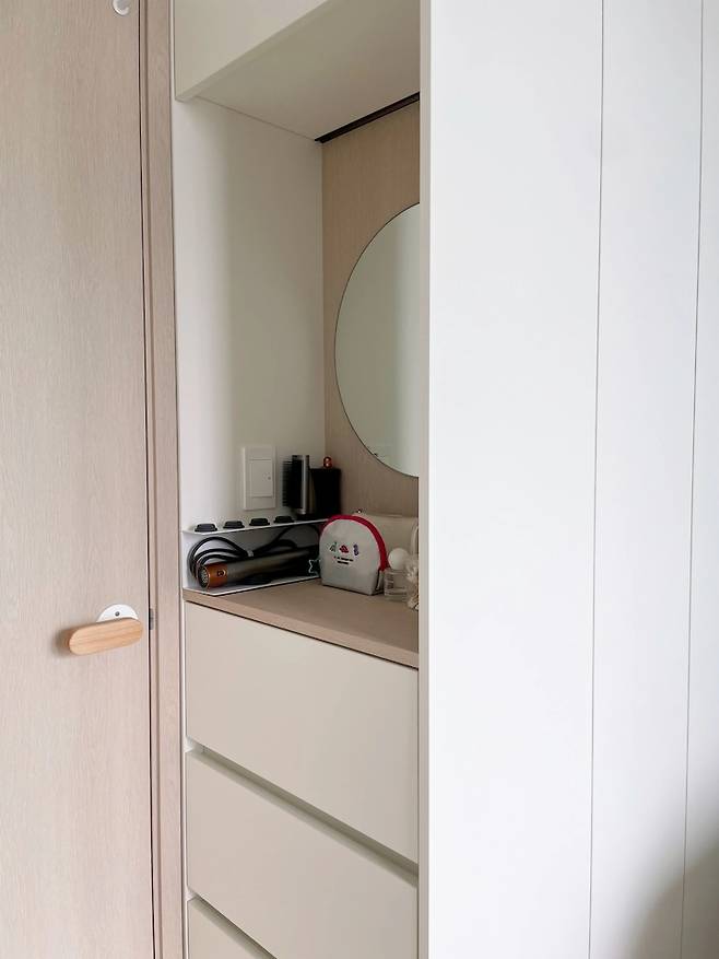 화장실 바로 옆에 파우더룸 같은 공간이 있으면 좋겠다고 생각해서 낸 아이디어였는데 머리속에 있던 모습이 그대로 현실로 만들어져서 아주 만족스러웠어요!