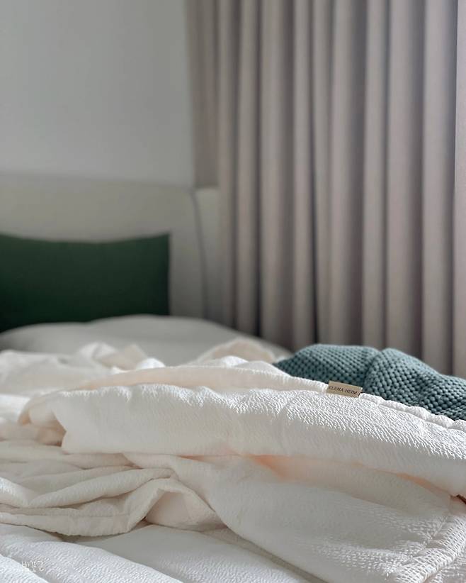 이불은 '엘레스하임'에서 모두 골랐어요! 이사를 여름을 앞두고 했기 때문에 여름 이불로 먼저 주문했고, 화이트에 어떤 포인트를 두고 싶어 추가 이불과 베개 커버는 그린으로 맞췄어요. 겨울이 되면 새 이불을 주문할 건데 지금 이불에 아주 만족하고 있기 때문에 그 때도 이 브랜드를 선택할 것 같아요.