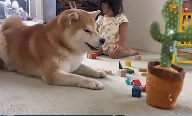 그런데 아무도 예상하지 못했던 곳에서 이 장난감의 진정한 주인이 나타났습니다. 바로 집안의 장난꾸러기 강아지였습니다. 선인장 인형을 발견한 강아지는 그 앞에 다가가 맹렬하게 짖기 시작했습니다. 놀랍게도 인형은 강아지의 짖는 소리를 그대로 따라 하며, 화려한 불빛과 함께 몸을 흔들기 시작했습니다.