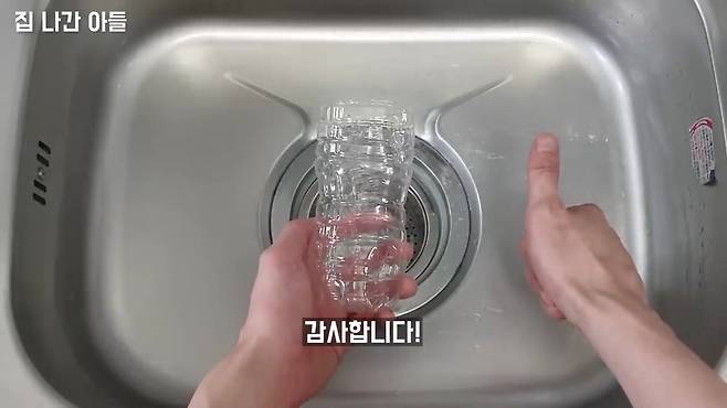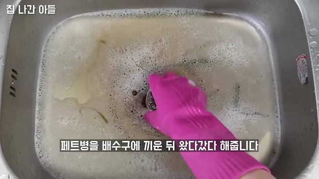 만든 페트병을 배수구에 밀착시켜 위아래로 반복적으로 펌핑합니다.