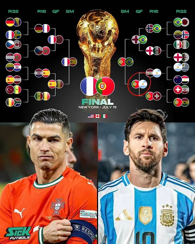한편, 해당 계정은 토너먼트 시나리오와 관련해 또 다른 흥미로운 가정을 제시했다. 리오넬 메시와 크리스티아누 호날두가 각각 아르헨티나와 포르투갈을 이끌고 8강에서 맞붙는 세기의 대결 가능성을 강조했다.