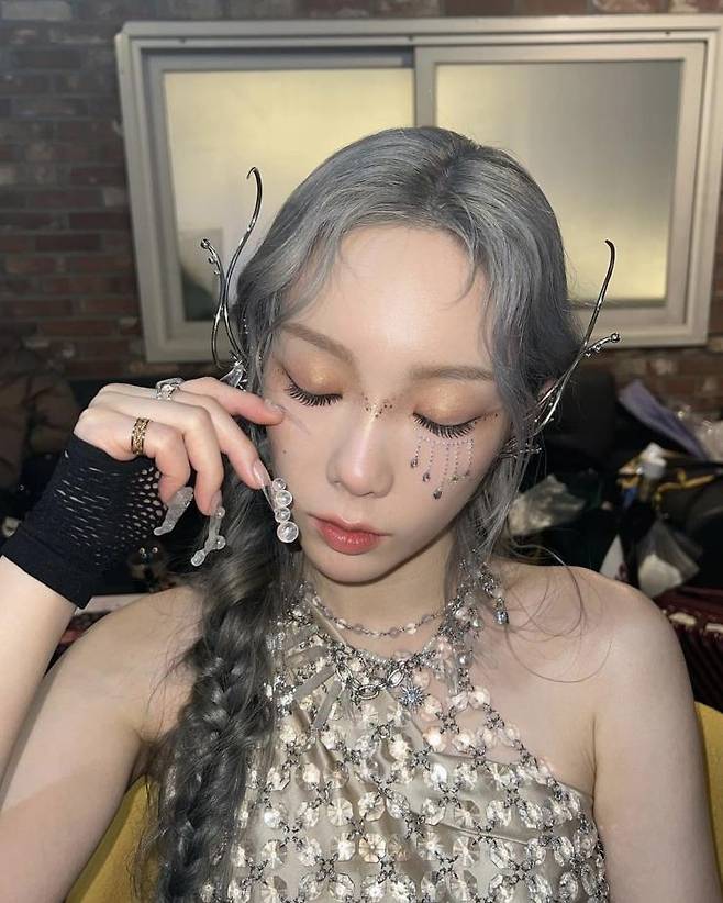 INVU 활동에서 은발 머리와 함께 파츠 메이크업을 즐겨 하고 나왔던 태연! 요정미 뿜뿜하는 외모에 걸맞게 파츠또한 실제 그녀의 일부처럼 느껴지네요!