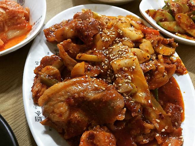 노포의 바이브가 물씬 풍기는 외관이 인상적인 맛집. 메뉴는 김치고등어 조림 단일 메뉴로 자리에 착석하자마자 인원수대로 메뉴가 준비된다. 붉은 양념빛이 고운 고등어김치찜과 그날그날 만드는 맛깔난 밑반찬이 든든한 한 끼를 선사한다. 이곳은 통통한 고등어에 특제 비법 소스를 넣어 버무린 후 김치를 넣고 끓여내 소스의 맛이 고등어살에 진하게 배어있는 것이 특징이다. 나박썬 무가 들어있어 양념맛이 달큰하게 밴 무도 맛있다. 양념이 많이 짜거나 맵지 않아 물리지 않고 끝까지 먹을 수 있다. 점심 시간에는 늘 웨이팅이 있으니 방문 전 참고하면 좋다.