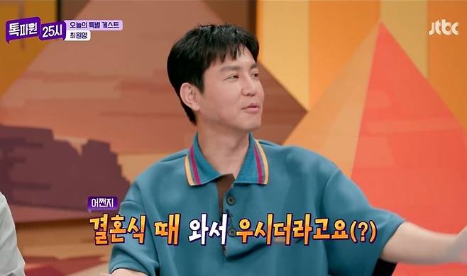 전현무는 "내가 프리 선언하고 처음으로 한 프로그램이 '오늘부터 엄마 아빠'였다. 아이들 5명을 가상으로 키우는 프로그램이었는데, 그중 한 명이 '동백꽃 필 무렵'의 김강훈이었다. 요만한 아이를 키웠다"라고 밝혔다. 최원영은 "그래서 제 결혼식에 와서 우시더라고요"라고 너스레를 떨었고, 전현무는 "진짜 부부 한다고 했잖아"라며 떼를 쓰는 모습을 연기해 웃음을 안겼다.