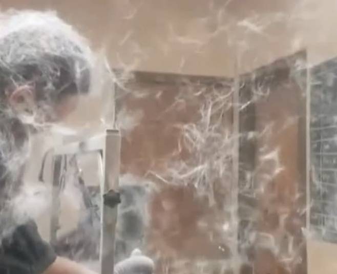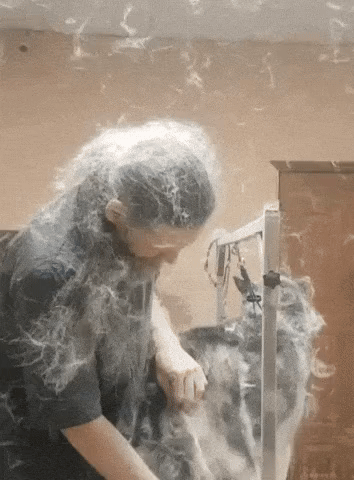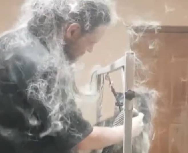 미용사는 잠시후 시베리안 허스키 강아지의 털을 미용하기 시작했는데요. 시간이 얼마나 흘렀을까. 미용사의 온몸에 털이 뒤범벅돼 보는 이들을 놀라게 합니다.