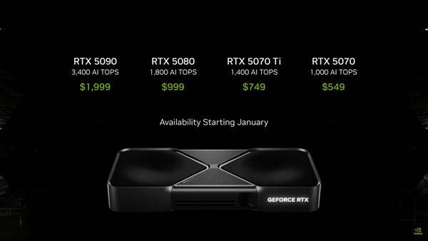 핵심은 가격이었는데, RTX 4090급 성능을 발휘한다고 소개한 지푀스 RTX 5070의 가격을 549달러로 발표해 행사 참가자들의 높은 호응을 받았다. 단지, RTX 40 시리즈 발표 같이 RTX 5070의 성능 역시 DLSS 프레임 생성 기반일 가능성이 높아 흔히 언급되는 '깡성능'은 추가 검증이 필요하다.