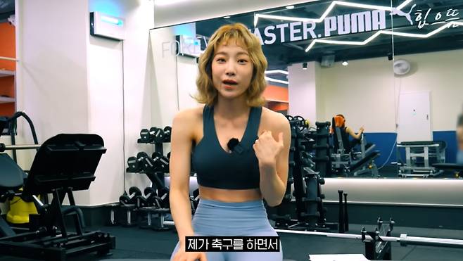 심으뜸은 "요즘 제가 '골때녀'에 합류하면서 축구까지 하니까 근육량이 많아진 줄 아시는데, 일단 근육량이 많아진 게 아니라 지방이 걷어진 상태다"라며 "축구가 정말 최고의 지방 연소 운동이다. 얼마 전에 '골때녀' 촬영 이후 회식 때 고기를 엄청 많이 먹었다. 그런데 다음 날 체중계에 올라갔는데 몸무게가 51.0kg더라. 축구가 그만큼 수분을 빼앗아가는 거다. 더 잘 먹어야겠다는 생각이 들었다"고 말했습니다.