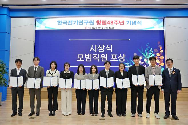 한국전기연구원(KERI)은 24일 창원본원 대강당에서 임직원 및 가족과 함께하는 ‘창립 48주년 기념식’을 개최했다.