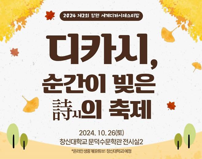 창신대학교(총장 이원근)와 한국디카시인협회(회장 김종회)가 주최하고 문덕수문학관이 주관하는 2024 제2회 창원 세계디카시페스티벌이 'K-Arts로서 한글 디카시의 세계화'라는 주제로 10월26일부터 11월9일까지 개최된다.