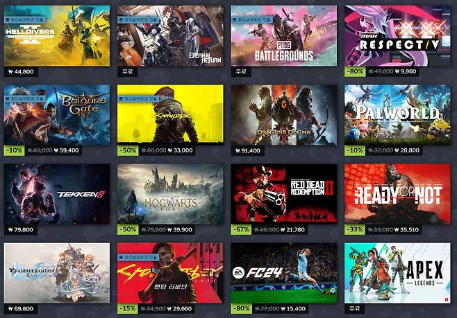 이 외에도 '포켓몬' 디자인 도용으로 논란을 불러왔던 '팰월드'와 지난해 각종 매체에서 '올해의 게임'으로 선정됐던 '발더스 게이트 3'이 10% 할인 중입니다.